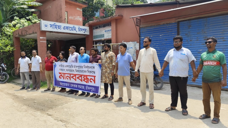 সাহিত্য একাডেমী, চাঁদপুর-এর নির্বাচনকে বানচালের ষড়যন্ত্র ও অপপ্রচারের বিরুদ্ধে মানববন্ধন করেছে জেলার সর্বস্তরের লেখক সমাজ।