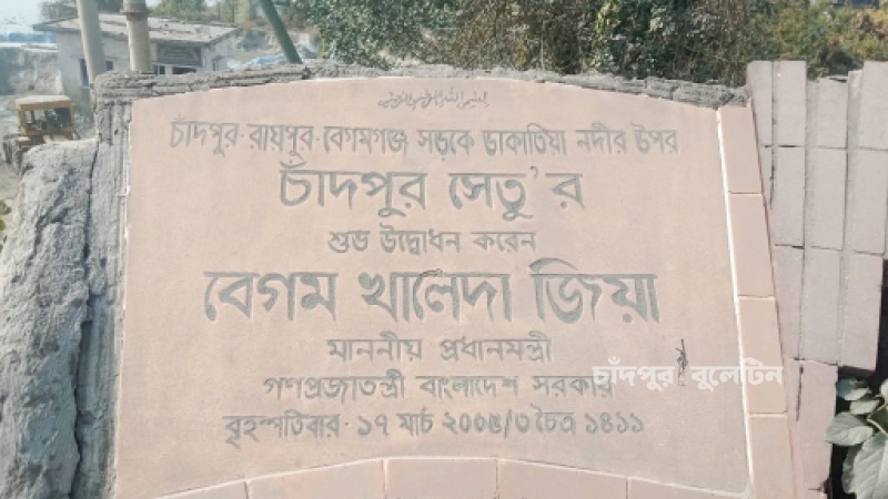 চাঁদপুর জেলা শহরের সাথে দক্ষিণাঞ্চলের সহজ যোগাযোগের অন্যতম মাধ্যম 'চাঁদপুর সেতু'। ডাকাতিয়া নদীর ওপর নির্মিত এই সেতুটি দুই দশকেরও বেশি সময় ধরে লক্ষ্মীপুর, নোয়াখালীসহ উপকূলীয় অঞ্চলের মানুষের যাতায়াতে বৈপ্লবিক পরিবর্তন এনেছে। তবে জনগুরুত্বপূর্ণ এই সেতুর উত্তর পাড়ে অবস্থিত উদ্বোধনী নামফলকটি এখন চরম অবহেলা আর অযত্নে বিলীন হওয়ার পথে।